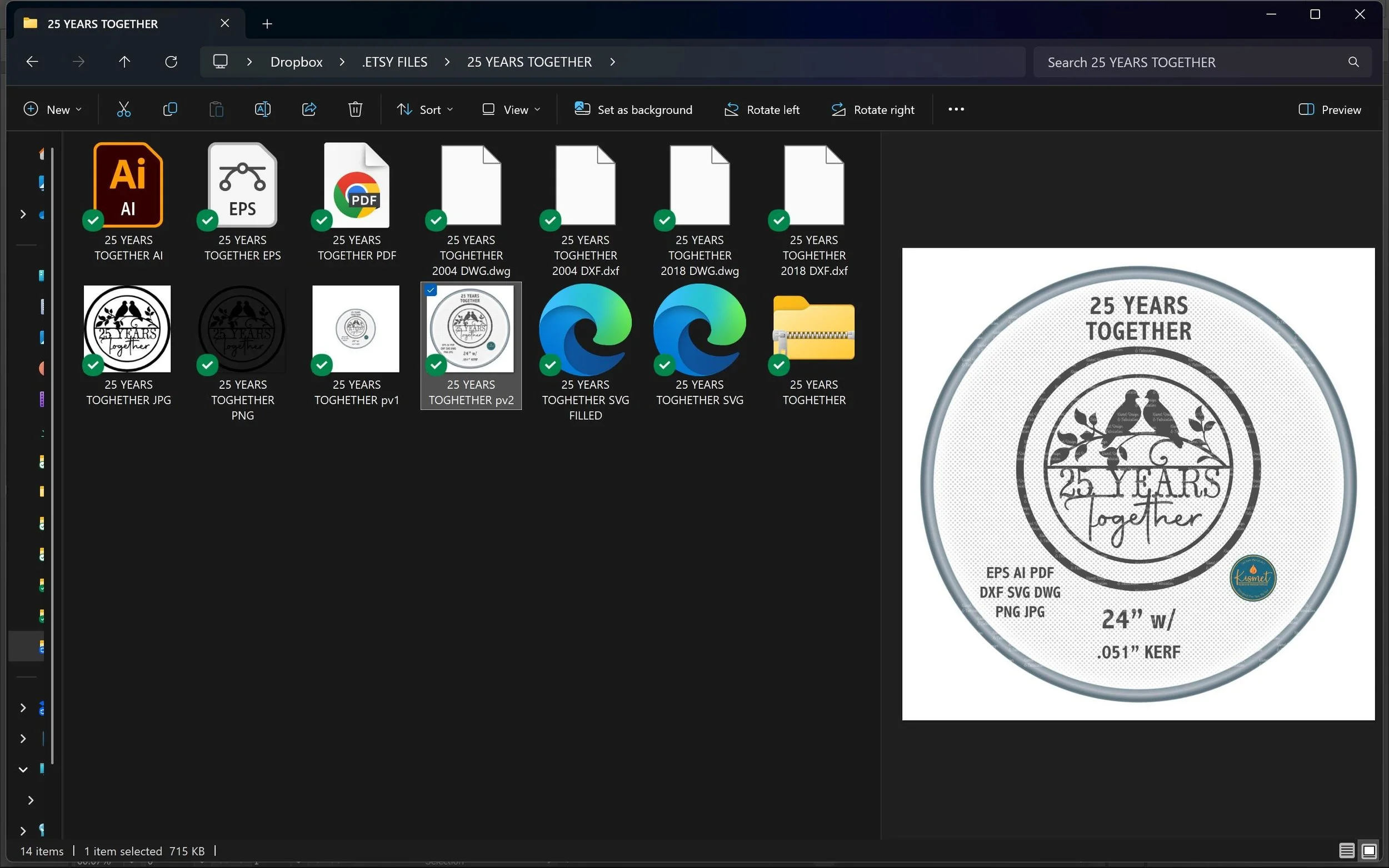 Most files are designed for .051" kerf — please check the preview images for exact design specs.