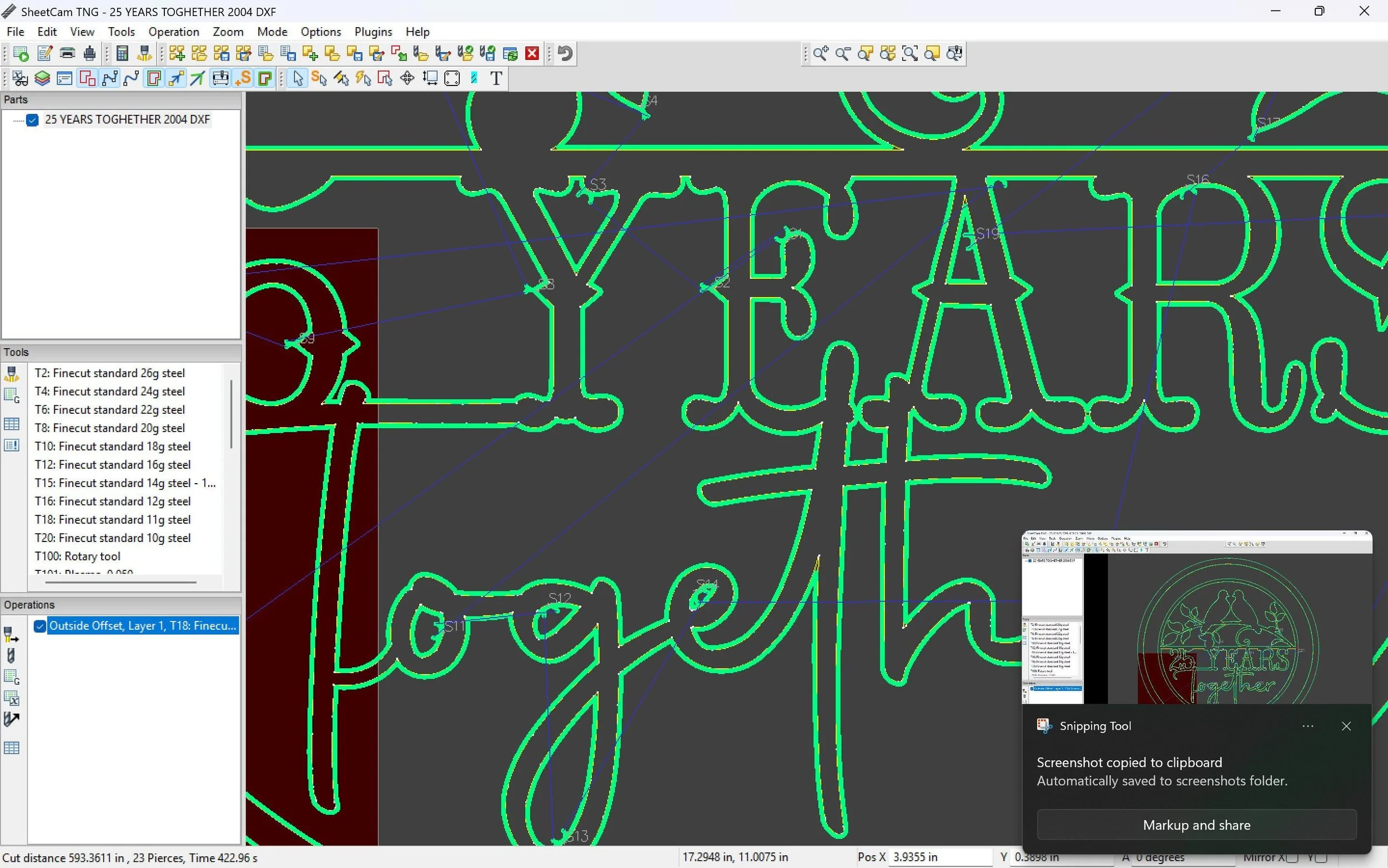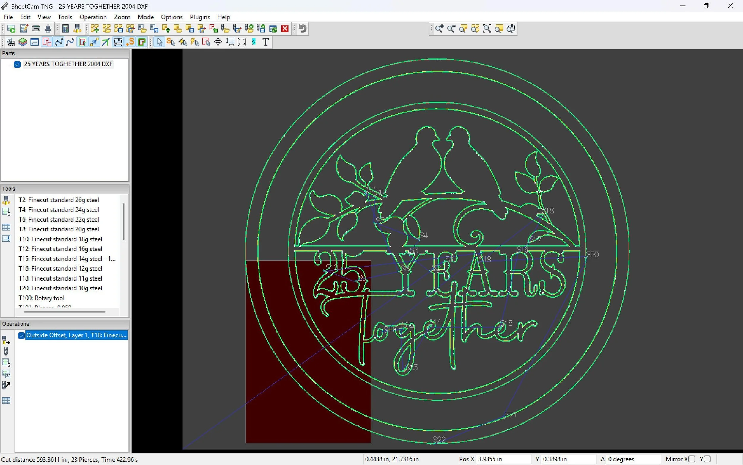 Hand drawn in Adobe Illustrator, tested in Sheet Cam, and proven on our Shop Sabre Sidekick 8.