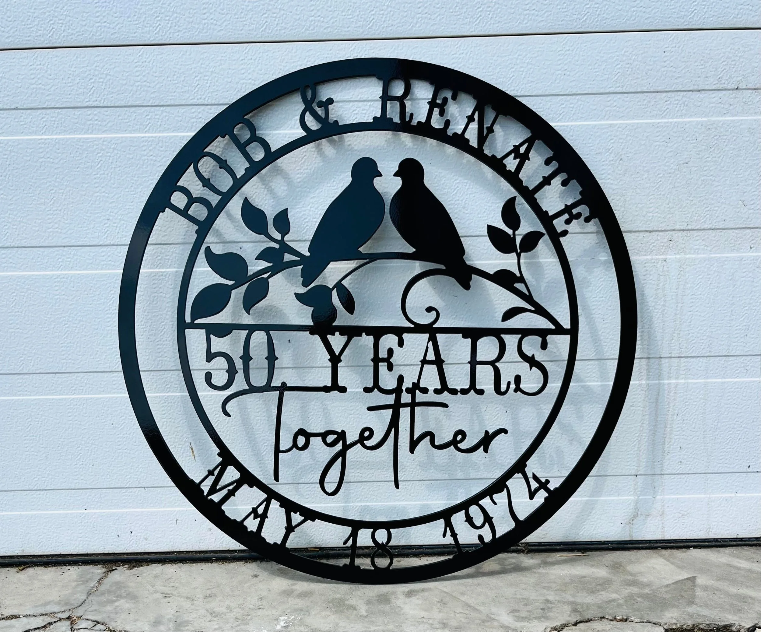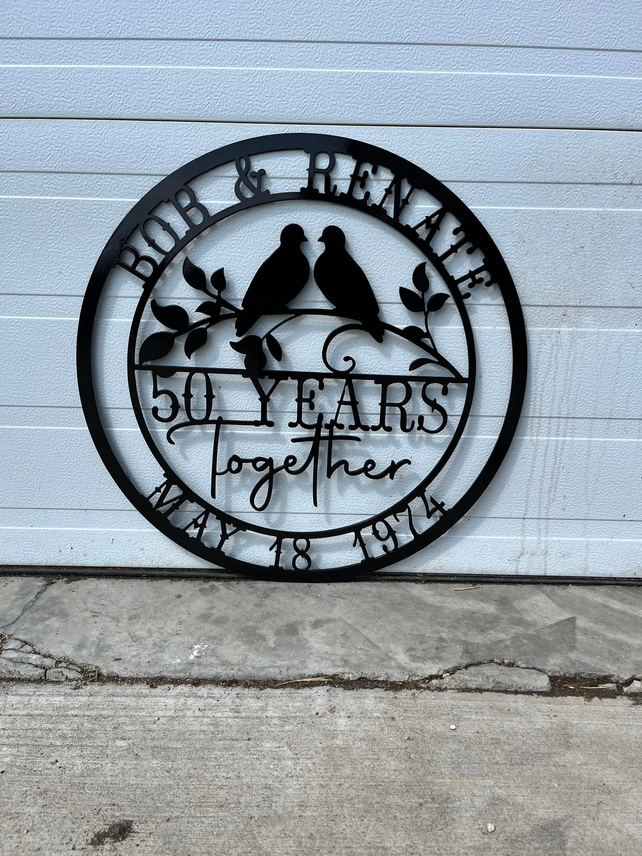 50th Anniversary Sign SVG: Love Birds Plasma DXF, Laser Cut Files, Cricut Waterjet Glowforge