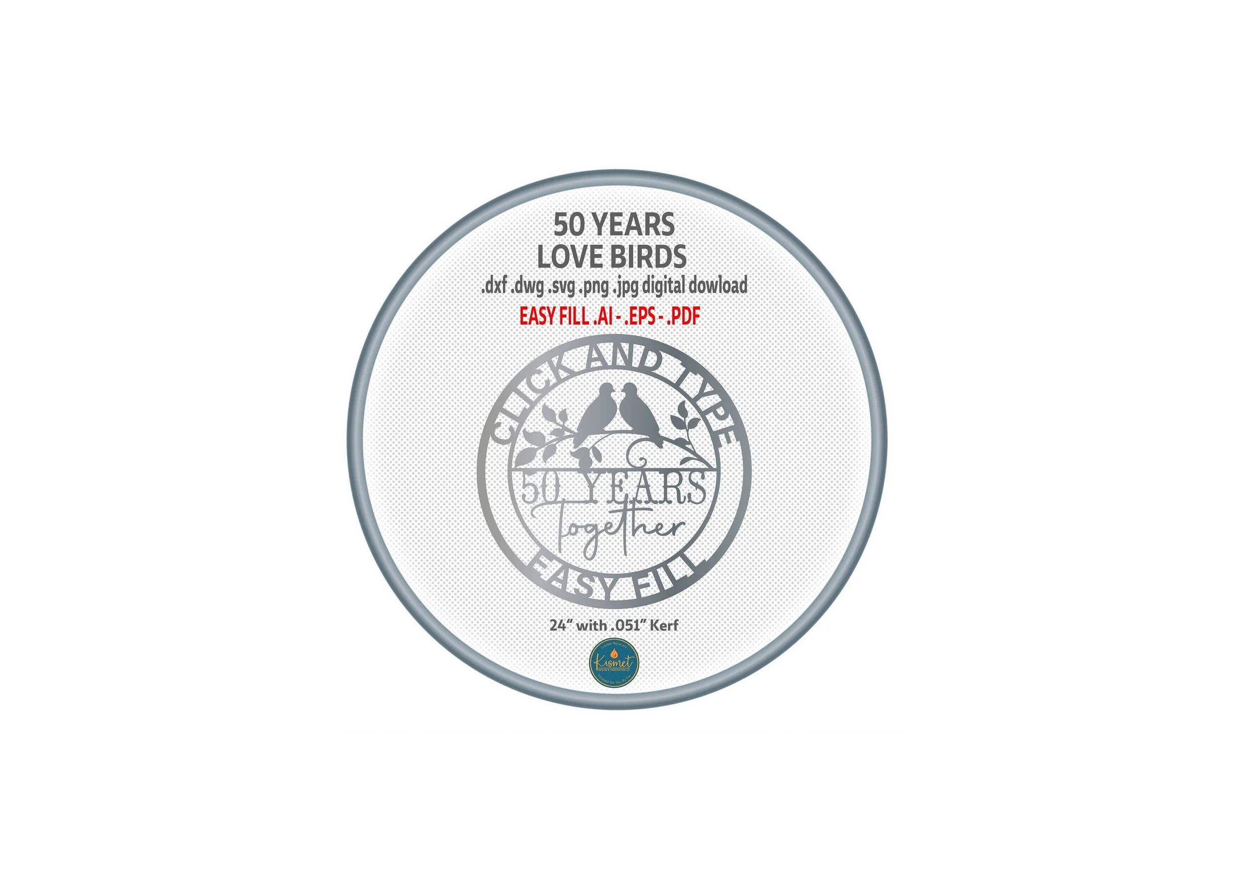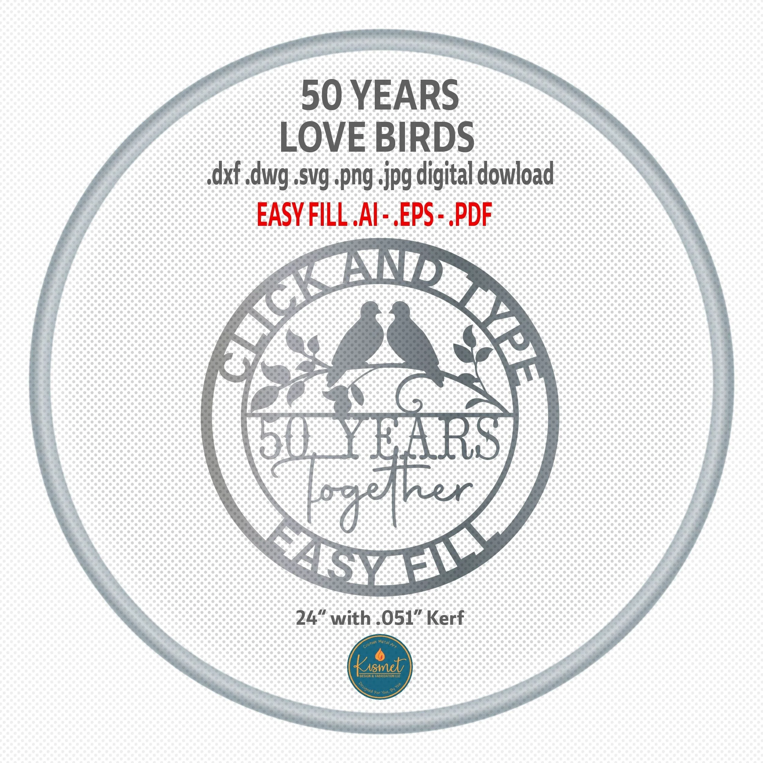Introducing our 50th anniversary sign dxf files for cnc plasma, a love birds svg files for laser cutting. This golden anniversary dxf plasma files, laser cut files bundle includes ai, eps, pdf, png, jpg, svg, dwg, and dxf files for a full collection of file formats to suit your needs. These versatile cut files feature clean lines and minimal nodes; they have been sheet cam tested for tolerances.