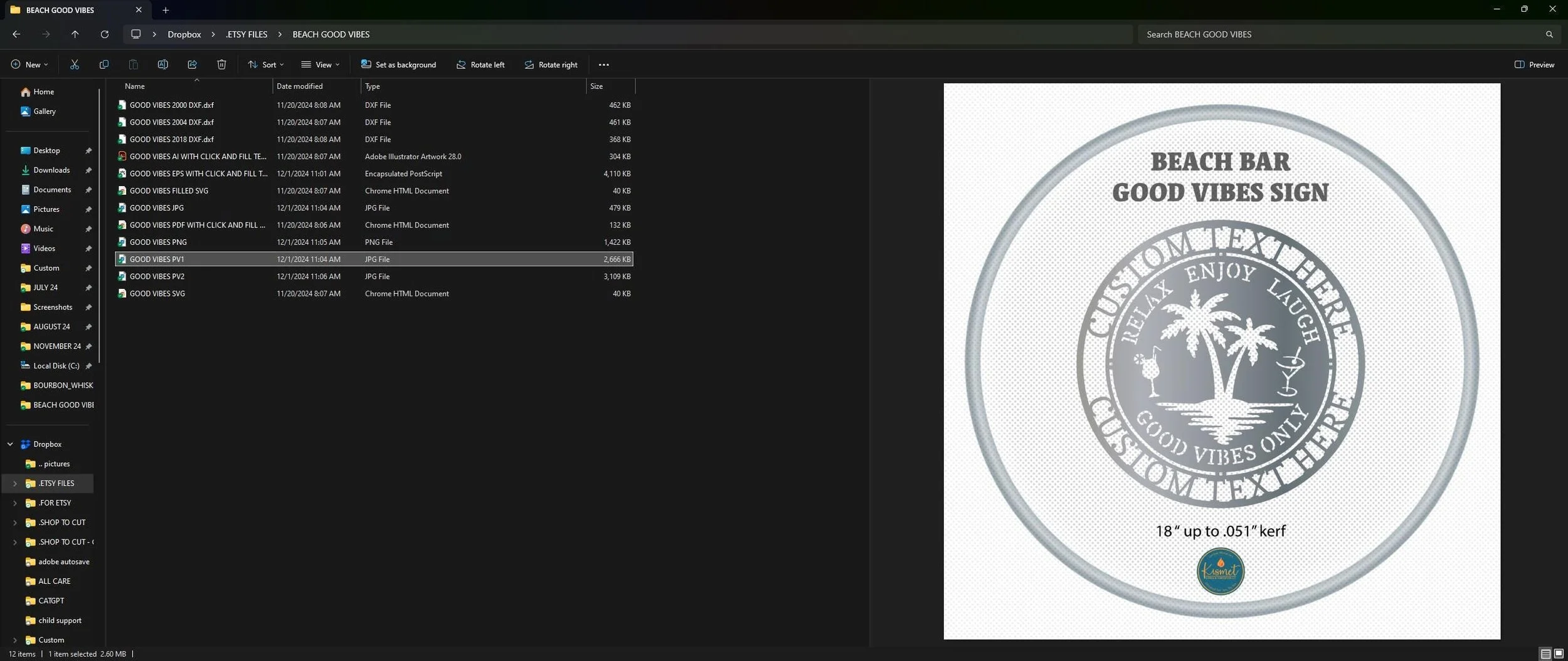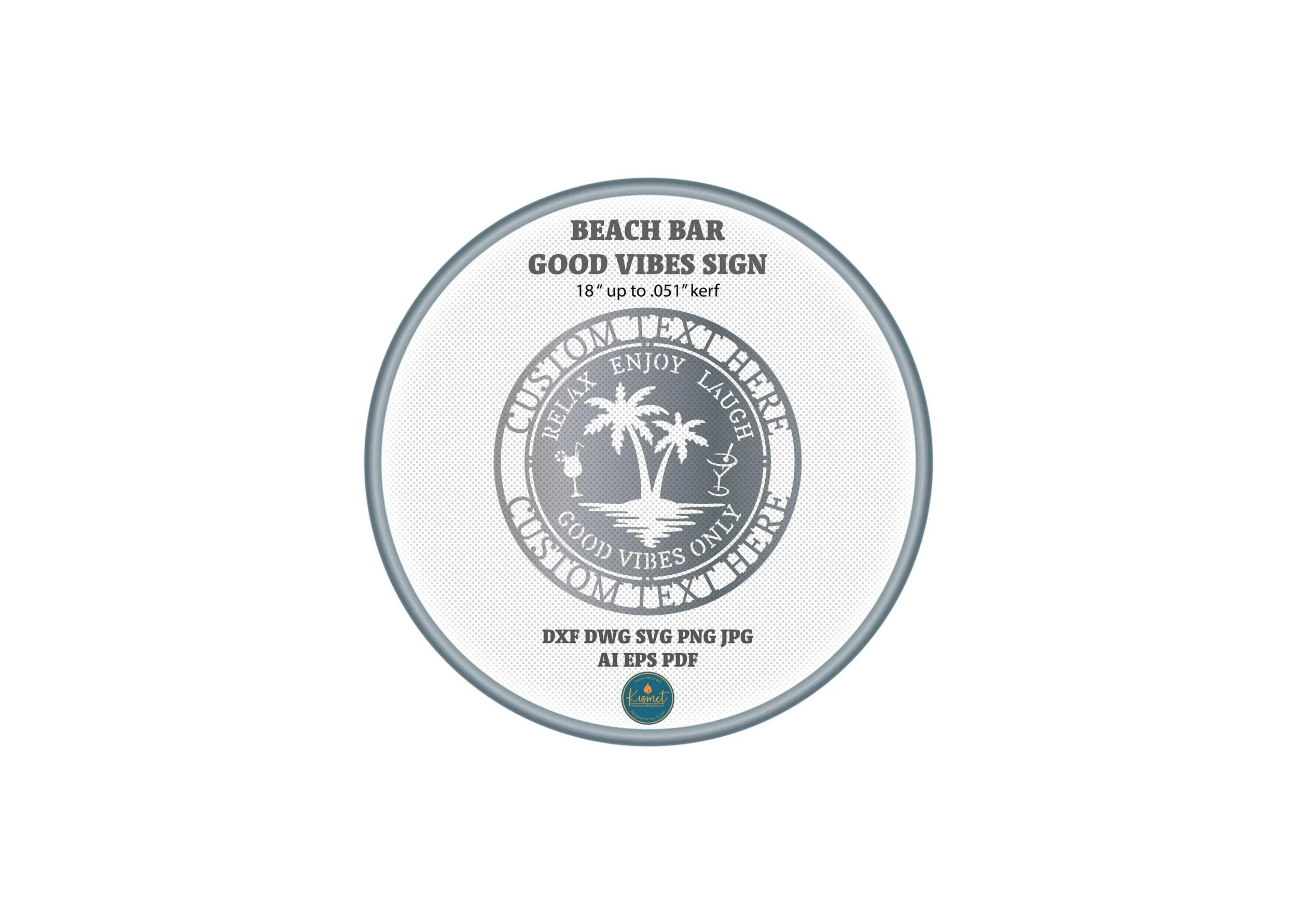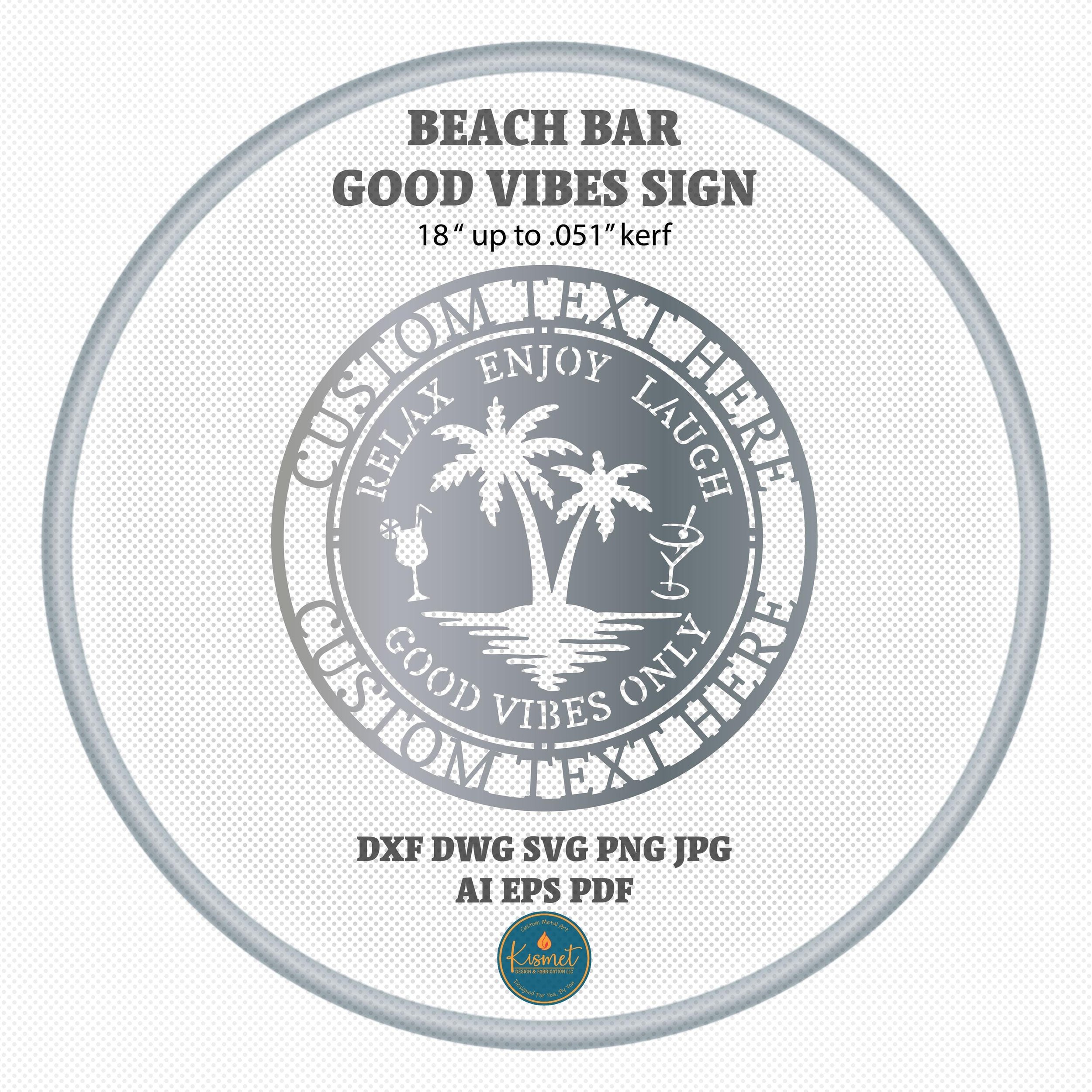 Introducing beach bar sign dxf files for cnc plasma, a palm tree svg file for laser cutting. This plasma dxf file, laser cut file, good vibes sign dxf cut file bundle includes png, jpg, svg, dwg, and dxf as well as fillable pdf, eps and ai files for a full collection of file formats to suit your needs. These versatile cut files feature clean lines and minimal nodes; they have been sheetcam tested for tolerances.