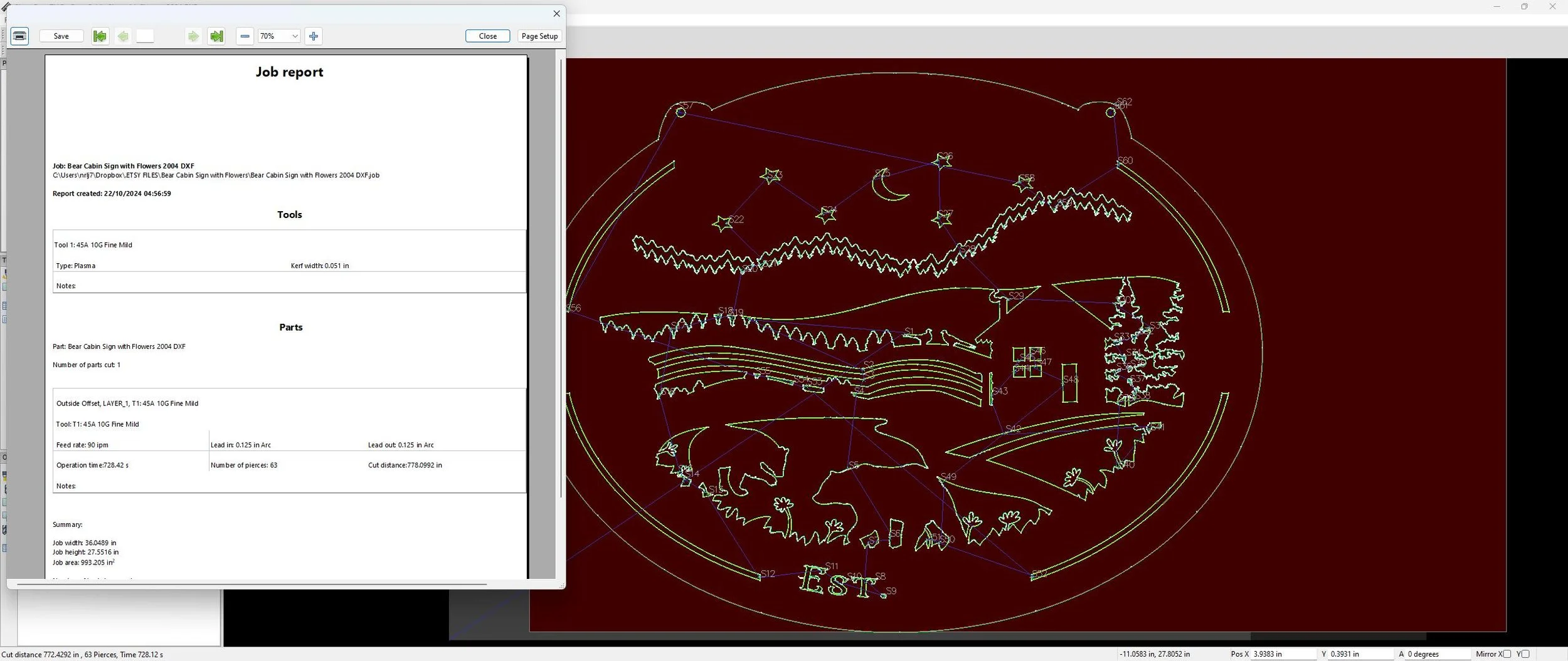 Our digital files are meticulously designed with a .051" kerf compensation, tailored for the fine cut tolerances of the Hypertherm plasma cutter, ensuring clean, precise cuts and enhancing the beauty and detail of your projects. Kerf refers to the material removed during the cutting process. By precisely accounting for this in our designs, we guarantee that details are preserved, and assemblies fit seamlessly, particularly on thinner metals and at larger sizes. The larger the design, the more effectively it compensates for kerf, making your projects come together perfectly.