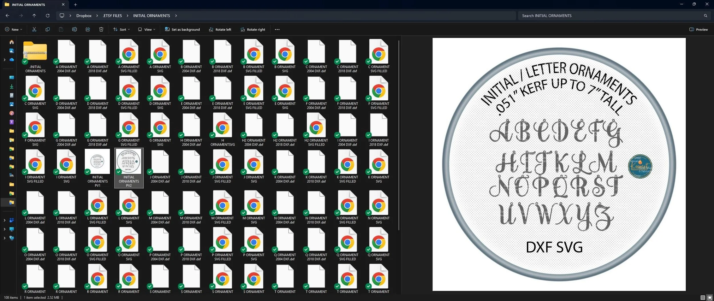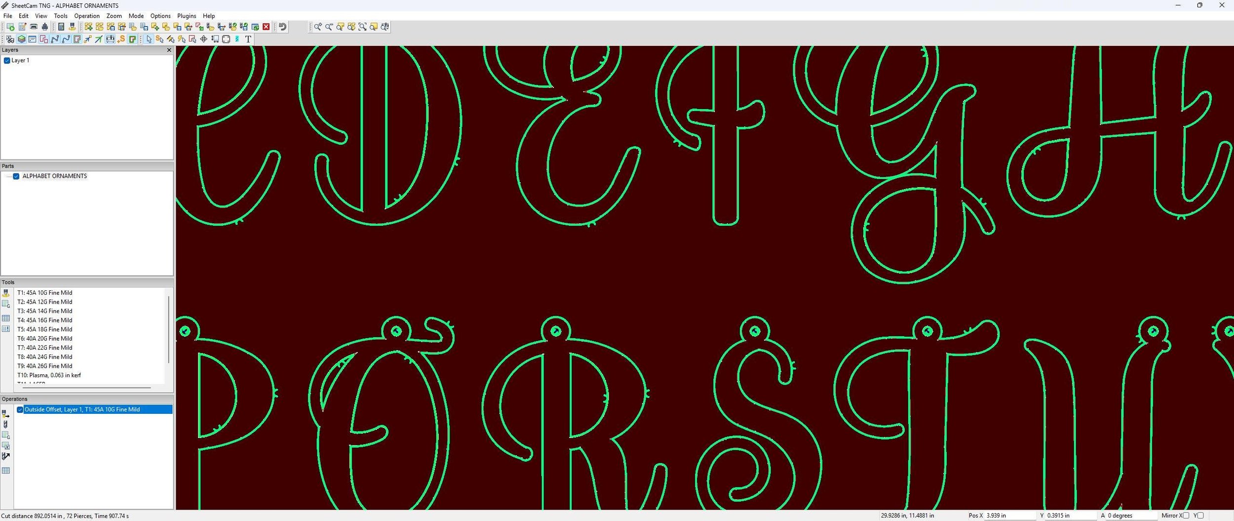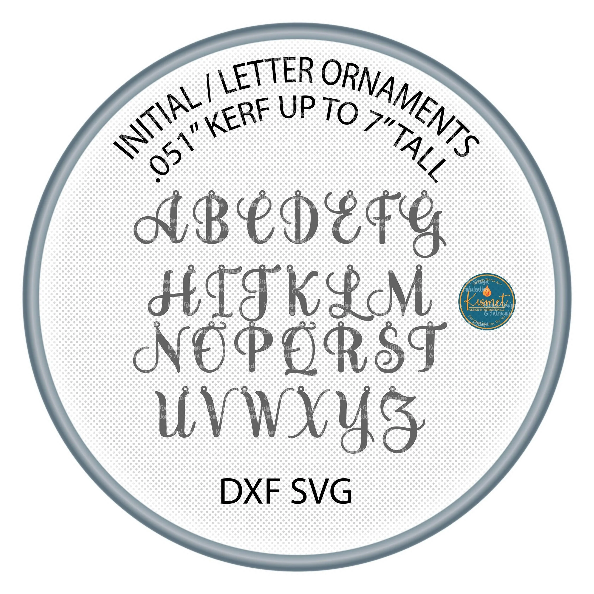 This Christmas Ornament SVG and monogram CNC Plasma Cutting DXF file set includes alphabet letters designed as lovely ornaments. These initial ornaments are designed as fully connected cut-paths with smooth, clean lines. Each ornament is bridged for hanging and prepared as a compound path for reliable cutting results across CNC plasma, laser, and waterjet systems.