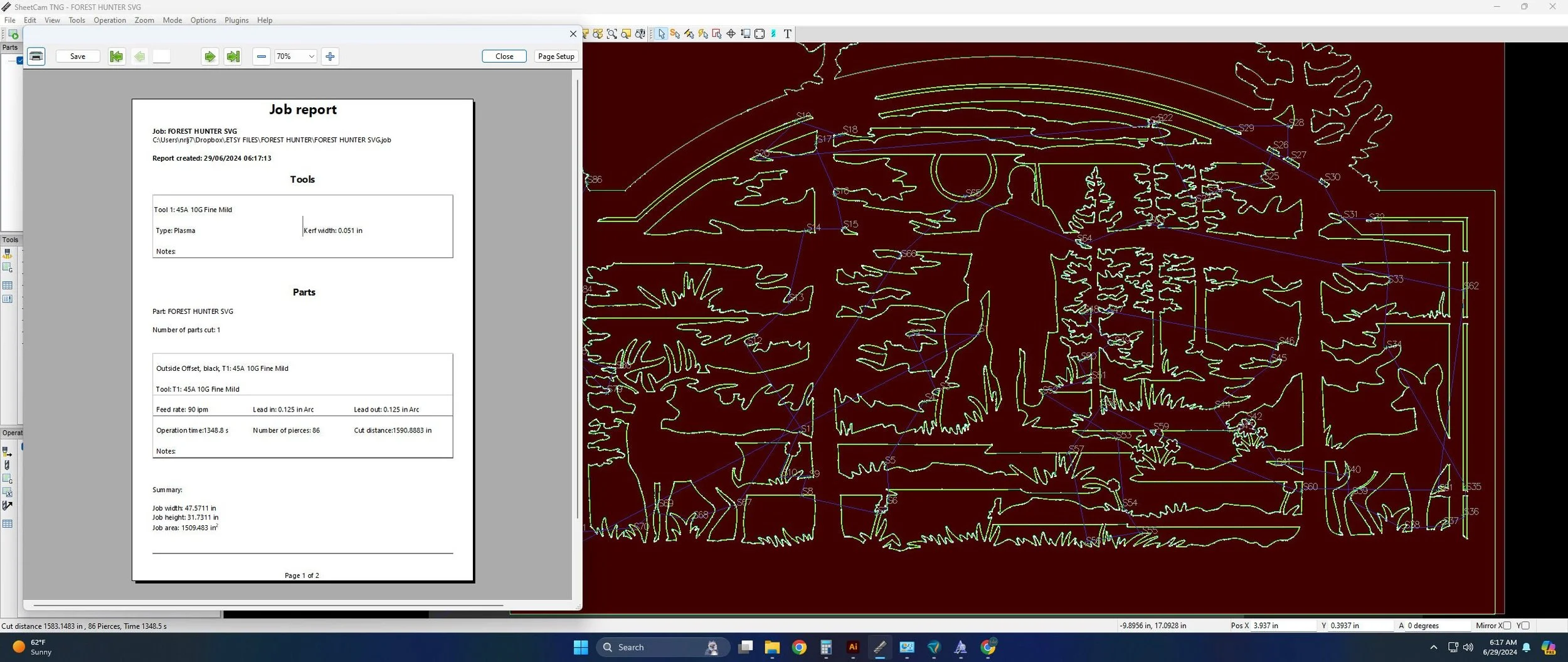 These digital files are meticulously designed with a .06" kerf compensation, tailored for the fine cut tolerances of the Hypertherm plasma cutter, ensuring clean, precise cuts and enhancing the beauty and detail of your projects. Kerf refers to the material removed during the cutting process. By precisely accounting for this in our designs, we guarantee that details are preserved, particularly on thinner metals and at larger sizes. The larger the design, the more effectively it compensates for kerf, making your projects come together perfectly.