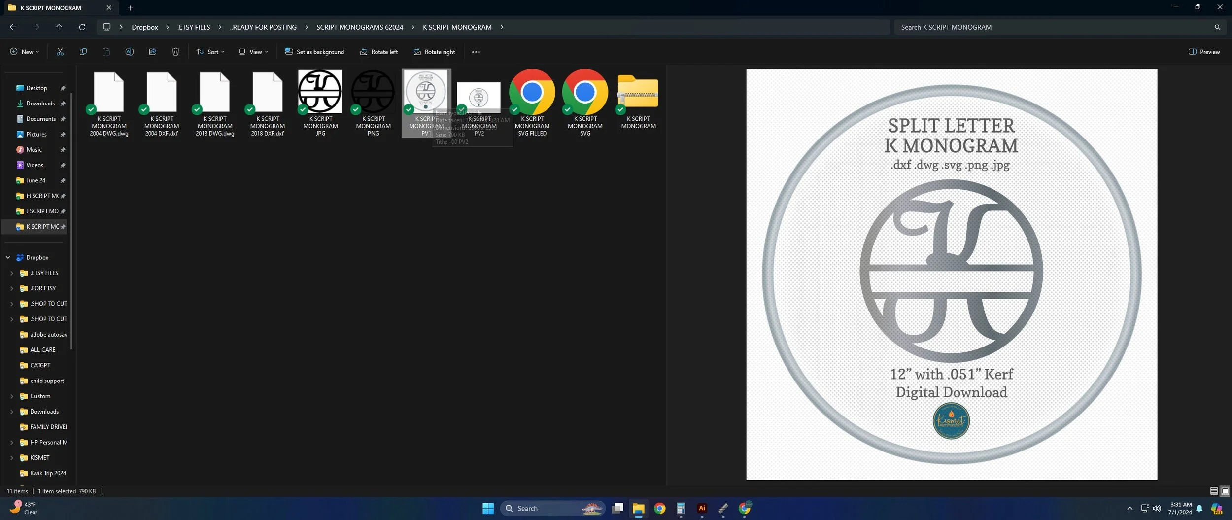 K Split Letter Monogram SVG, CNC Plasma DXF, Laser Cut File, xtool (Digital Download)