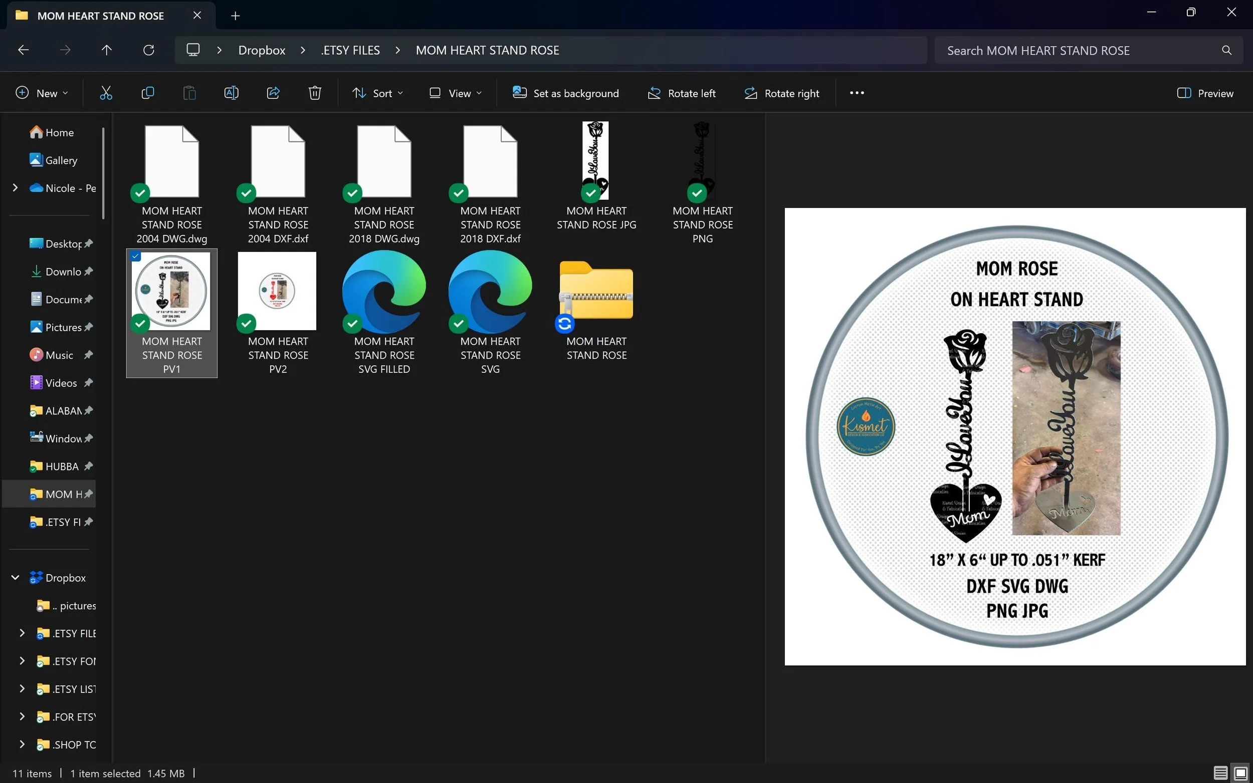 Introducing our forever rose plasma cut file for valentines day, You will love our clean cutting metal rose dxf files for cnc plasma cutting . These Mom rose laser files; I love you svg files for cnc come in a convenient file bundle that includes png, jpg, svg, dwg, and dxf files for a full collection of file formats to suit your needs. These versatile cut files feature clean lines and minimal nodes; they have been sheetcam tested for tolerances.