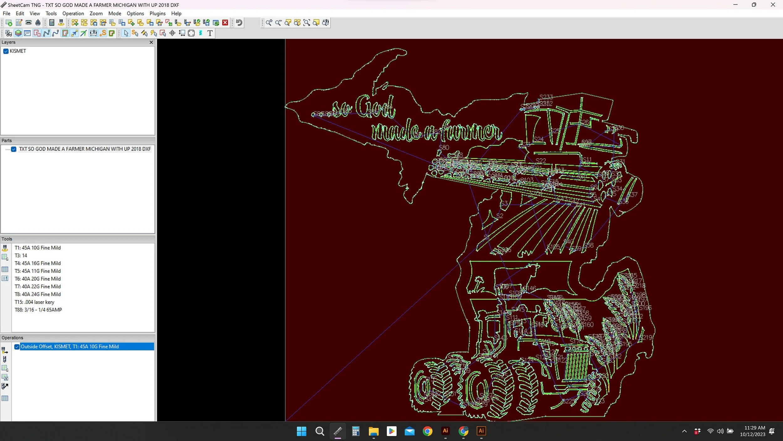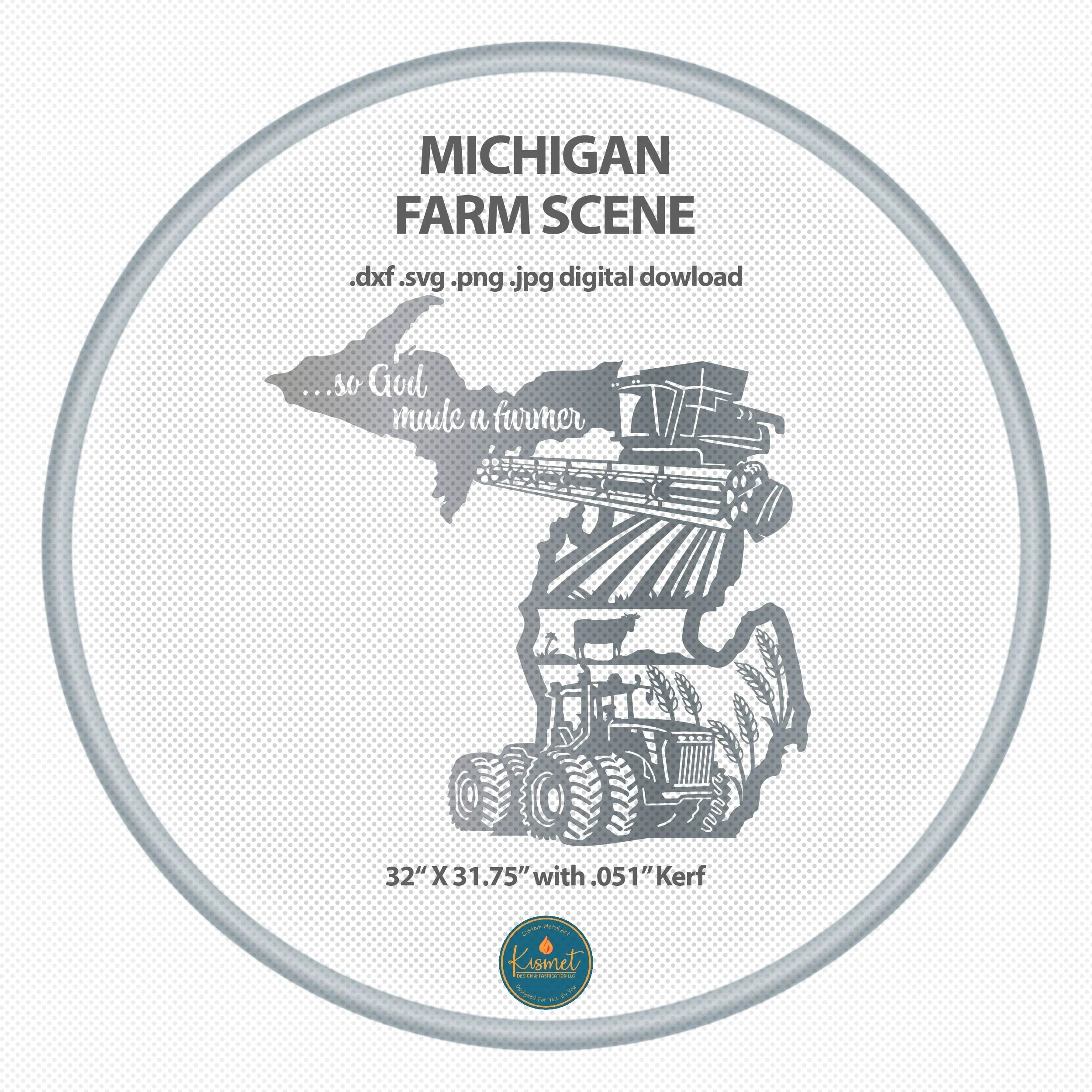 Introducing our Michigan sign laser cutting files for cnc, a detailed god made a farmer sign for metal. This farm and combine sign svg, tractor dxf for laser cutters file bundle includes svg jpg png dwg (r14 & 2018) and dxf files (r14 & 2018) for a full collection of file formats to suit your needs. These versatile cutting files are perfect for creating custom plasma cut ranch signs on your cnc machine and feature clean lines and minimal nodes; they have been sheetcam tested for tolerances.
