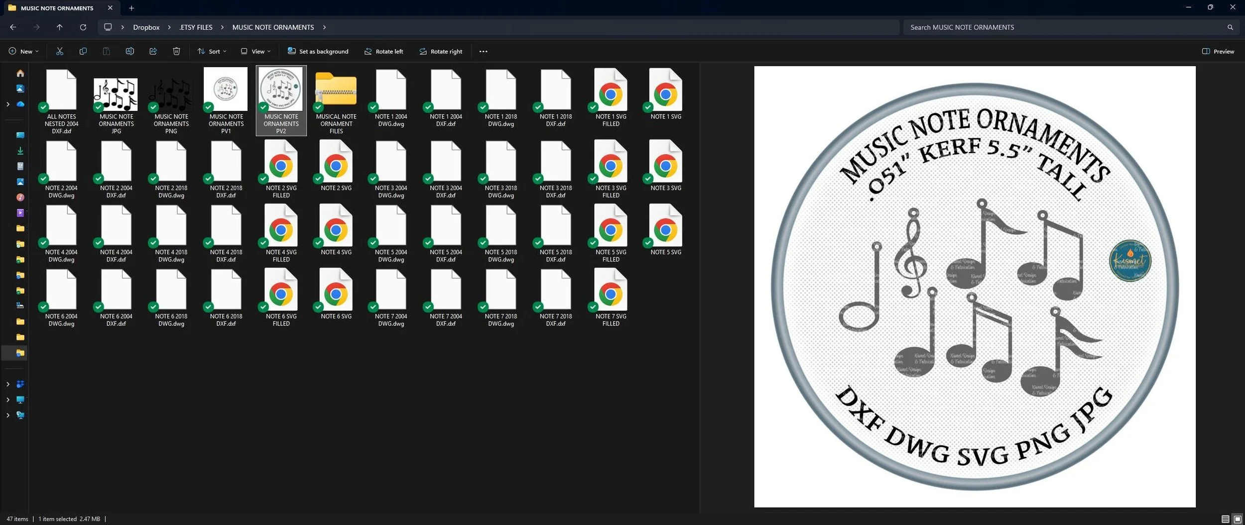 This Music Note Ornament SVG and Christmas ornament CNC Plasma Cutting DXF file set includes multiple music-note ornaments designed as fully connected cut-paths with smooth, clean lines. Each ornament is bridged for hanging and prepared as a compound path for reliable cutting results across CNC plasma, laser, and waterjet systems.