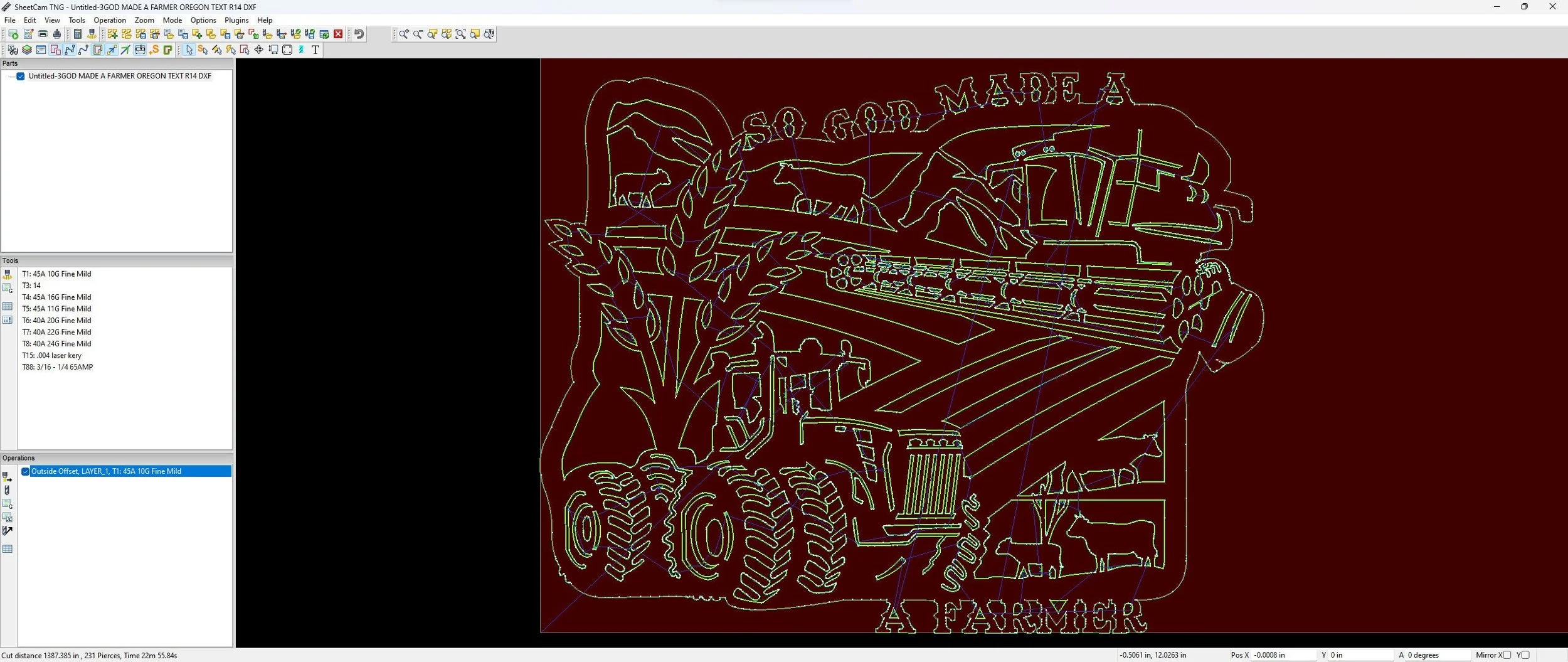 Introducing our so god made a farmer laser cutting files for cnc, a farm sign svg file for plasma cutting. This farm scene dxf files for metal, ontario svg, oregon sign dxf files for metal, tractor svg files for laser cutters file bundle includes svg jpg png dwg (r14 & 2018) and dxf files (r14 & 2018) for a full collection of file formats to suit your needs. These versatile cutting files are perfect for creating custom plasma cut ranch signs on your cnc machine and feature clean lines and minimal nodes; they have been sheetcam tested for tolerances.
