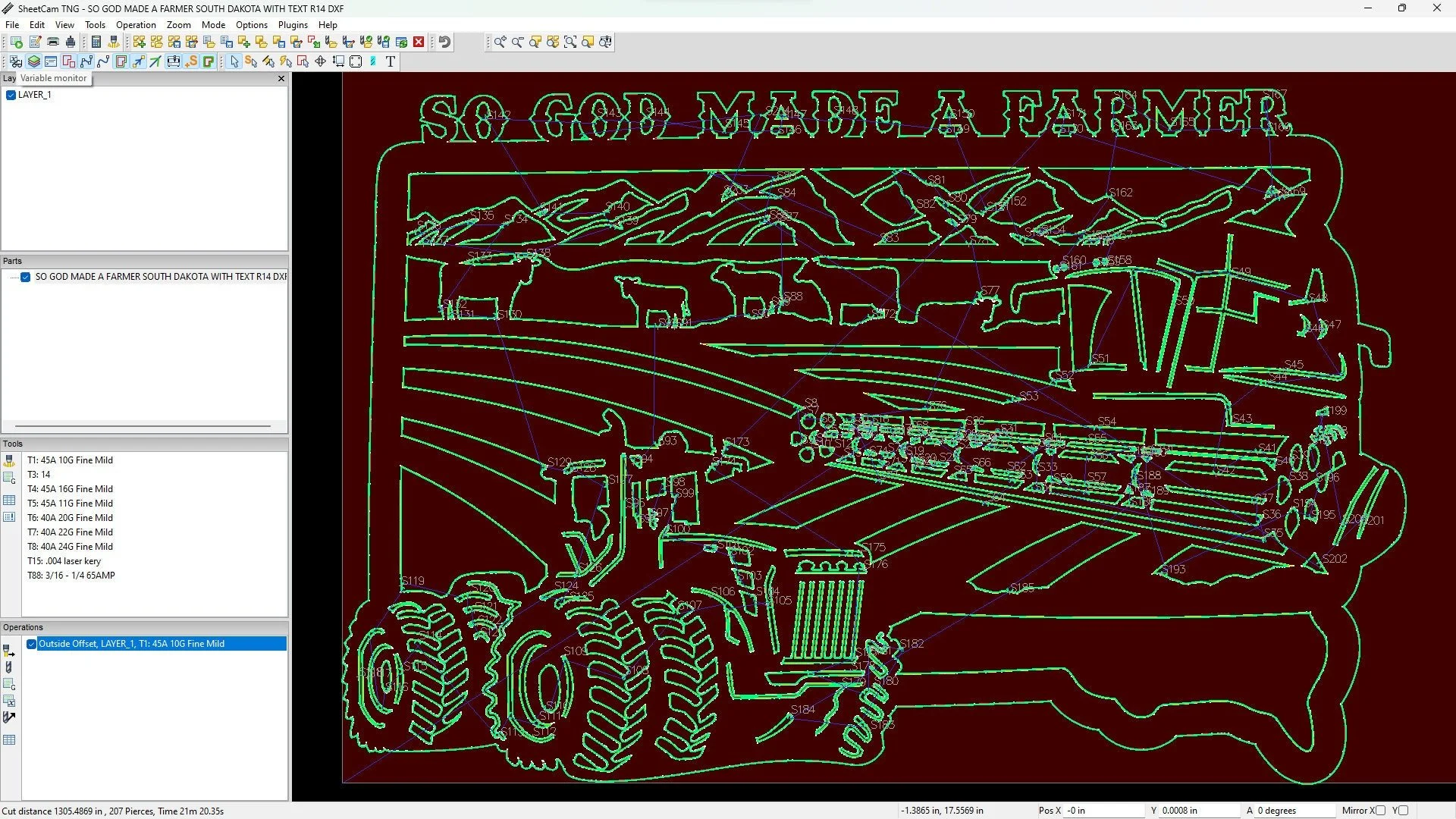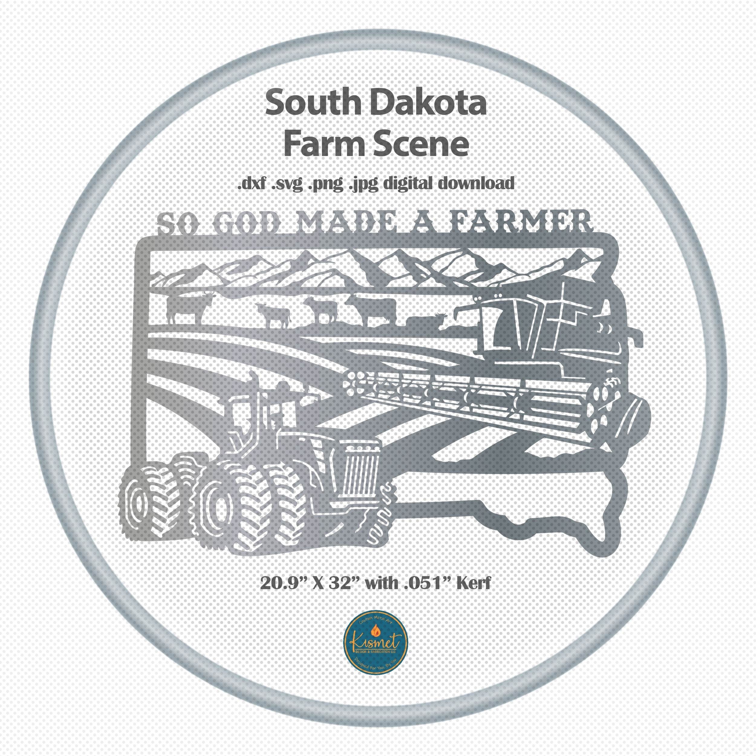 Introducing our South Dakota sign laser cutting files for cnc, a detailed god made a farmer sign for metal. This farm and combine sign svg, tractor dxf for laser cutters file bundle includes svg jpg png dwg (r14 & 2018) and dxf files (r14 & 2018) for a full collection of file formats to suit your needs. These versatile cutting files are perfect for creating custom plasma cut ranch signs on your cnc machine and feature clean lines and minimal nodes; they have been sheetcam tested for tolerances.