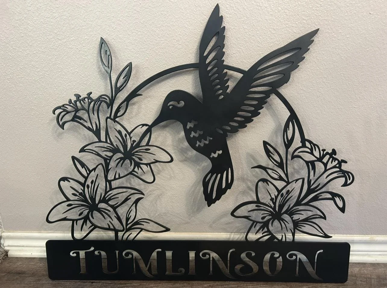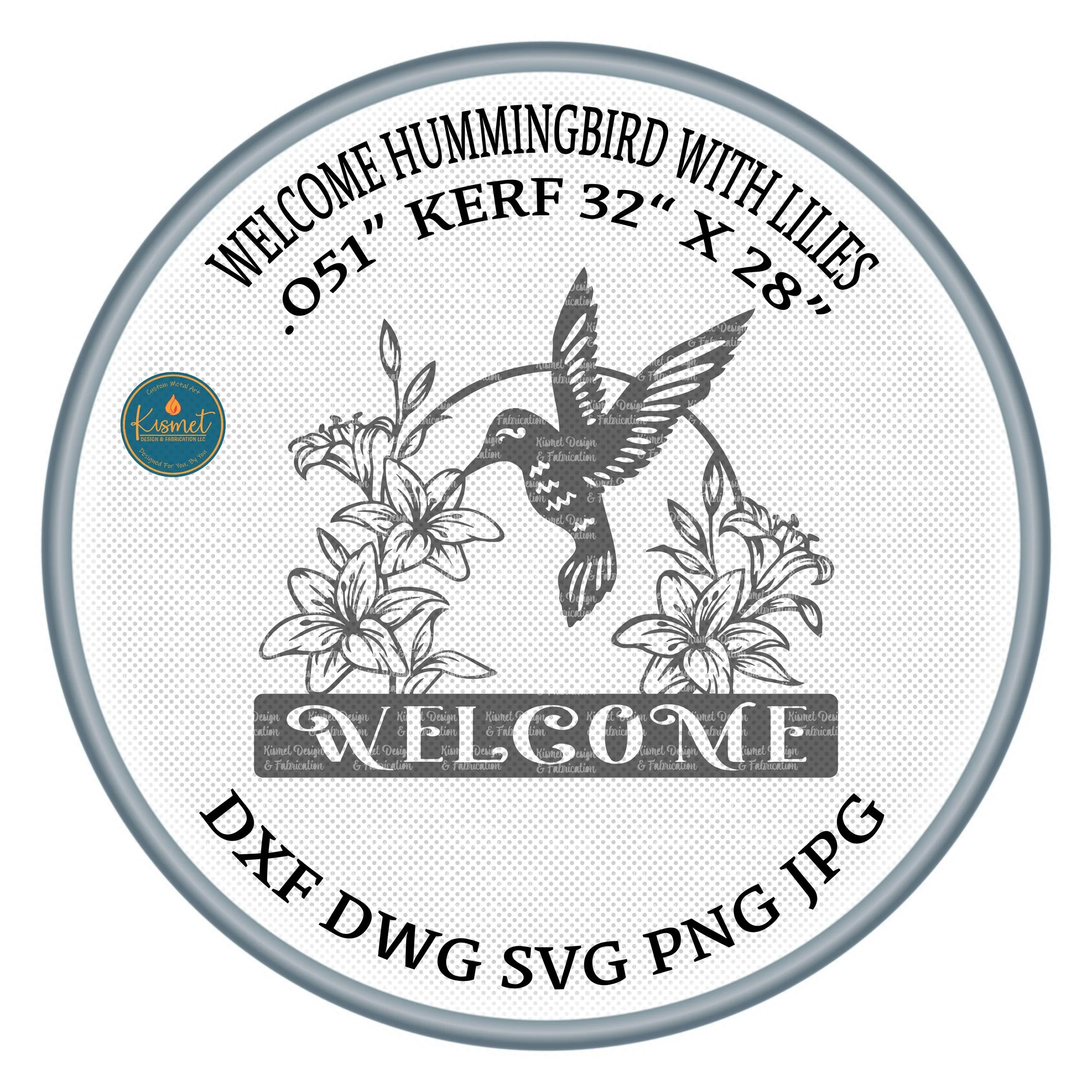 This Welcome Sign DXF File features a graceful hummingbird silhouette with lilies, designed as a laser cut file for CNC plasma, Glowforge, Cricut, or waterjet machines. The text area is easily customizable, making it perfect for personalized welcome signs, metal wall art, or garden décor. Each file is cut-ready, precision-tested, and ready for instant digital download.