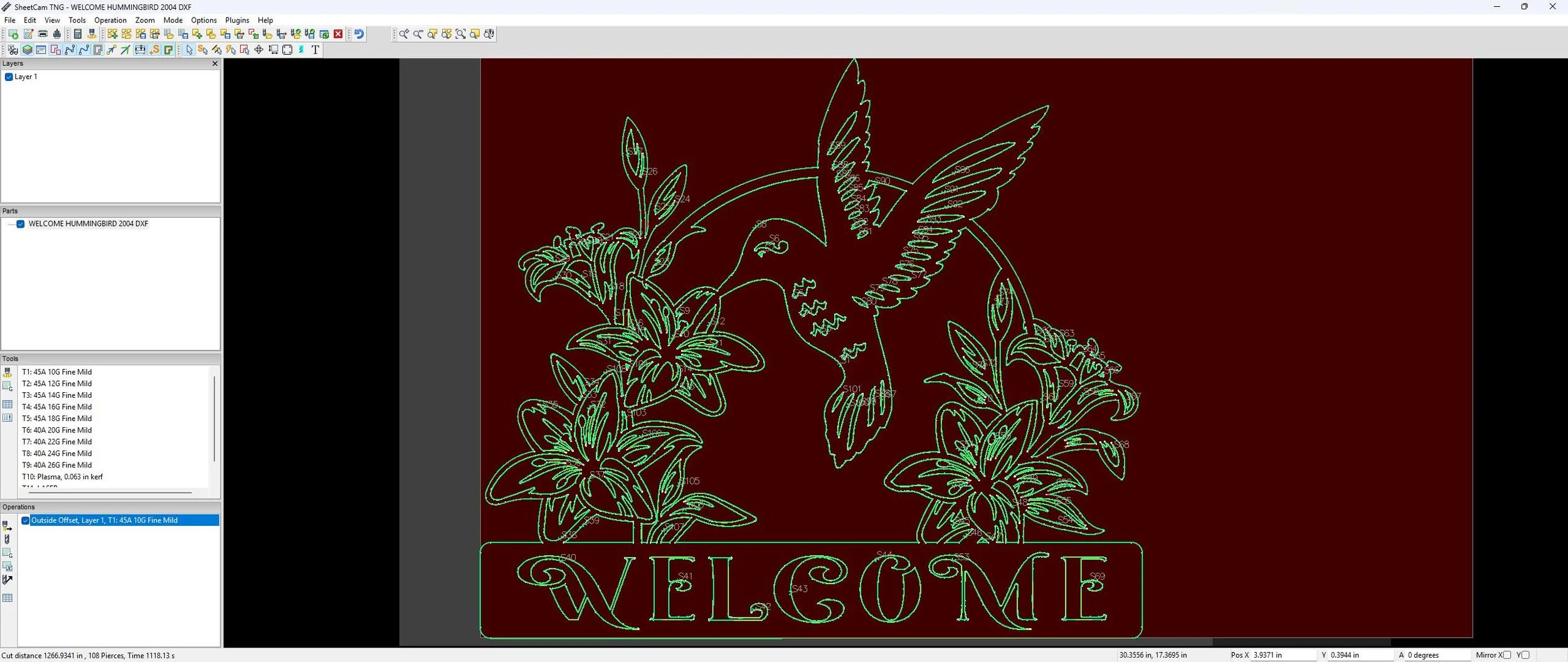 Kerf-compensated (.051") for clean, defined cuts. Every line of the hummingbird and lilies is optimized for smooth, accurate motion and crisp detailing.