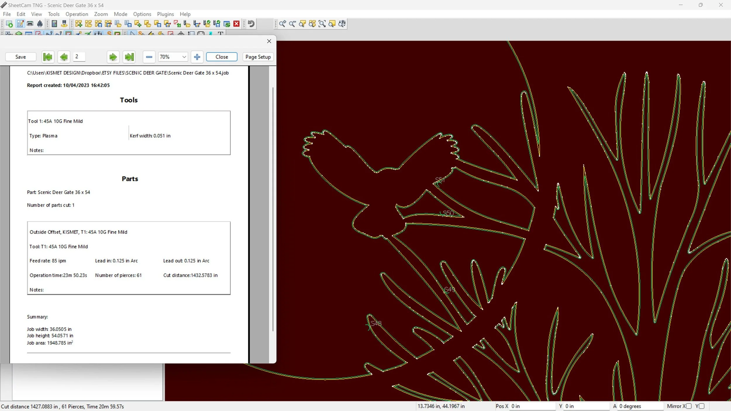 Our digital files are meticulously designed with a .051" kerf compensation, tailored for the fine cut tolerances of the Hypertherm plasma cutter, ensuring clean, precise cuts and enhancing the beauty and detail of your projects. Kerf refers to the material removed during the cutting process. By precisely accounting for this in our designs, we guarantee that details are preserved, and assemblies fit seamlessly, particularly on thinner metals and at larger sizes. The larger the design, the more effectively it compensates for kerf, making your projects come together perfectly.
